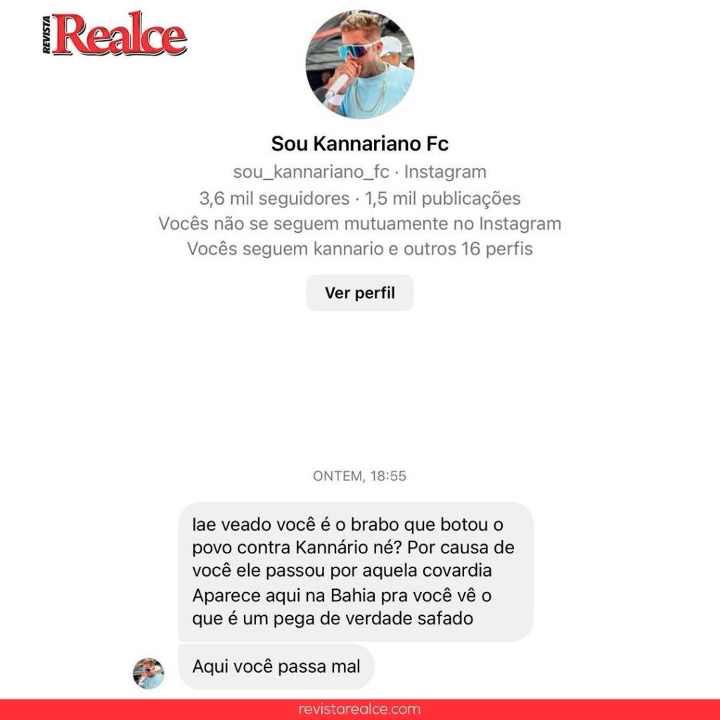 Segundo a revista Realce, uma mensagem foi enviada de forma direta e acusava o secretário de ser o responsável por supostamente incitar a população contra Kannário. Além disso, o fã clube convocou o chefe da pasta municipal a comparecer na Bahia para “ver o que é um pega de verdade”, em uma clara intimidação.