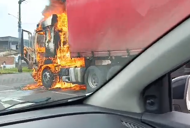 Cabine de carreta é tomada por chamas na BR-235, em Areia Branca