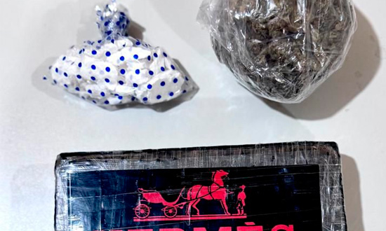A guarnição realizou a abordagem dos dois e ao revistar o bornal, foram encontrados um tablete de substância análoga à cocaína, um pacote menor da mesma substância e um pacote contendo material semelhante à maconha.
