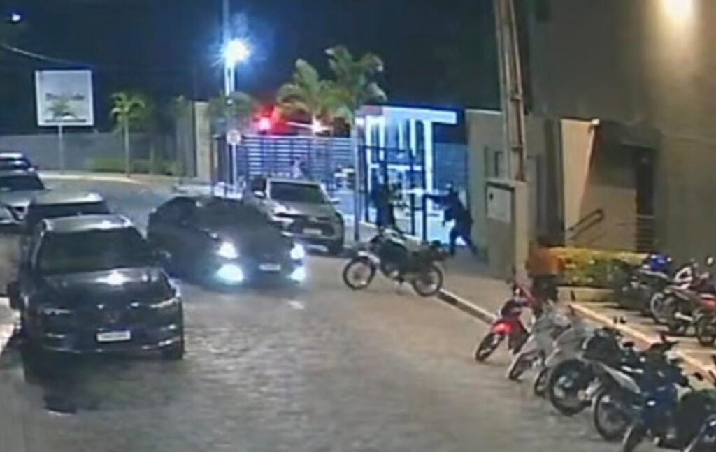 Os vídeos compartilhados, mostram o momento em que a vítima estava caminhando pela calçada, quando foi surpreendida com os tiros. O suspeito estava utilizando um capacete e saiu do local em uma moto após os disparos.
